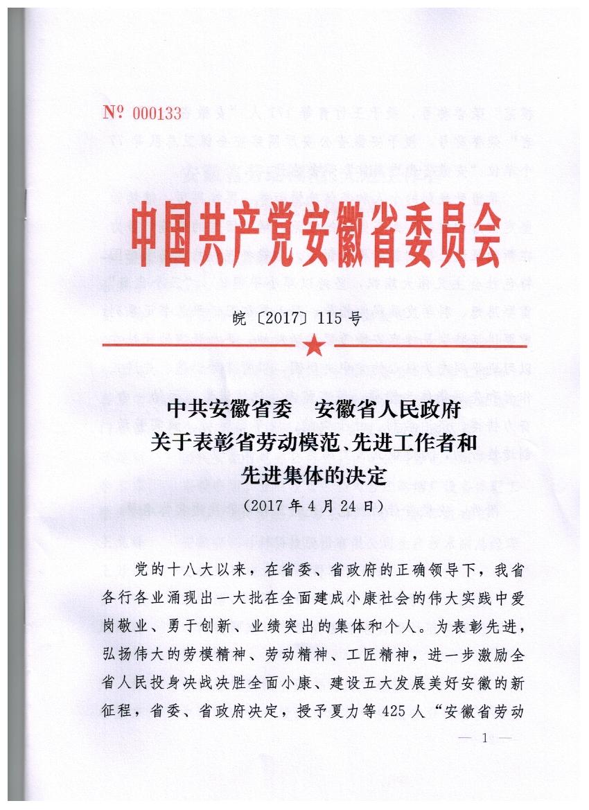 我院党委书记、院长刘家珍荣获安徽省先进工作者荣誉称号