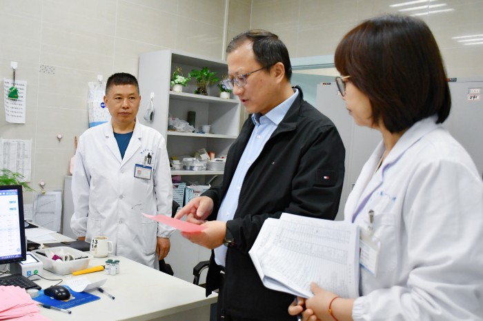 News五一将至,为确保五一假期医院各项工作的安全稳定运行,为患者提供安全可靠的就医环境,4月24日上午,我院党委副书记、院长张文俊、副院长沈童童带领设备科、信息科、总务科、保卫科等科室负责同志组成的检查组,对我院南区开展了全面且细致的安全生产检查工作。