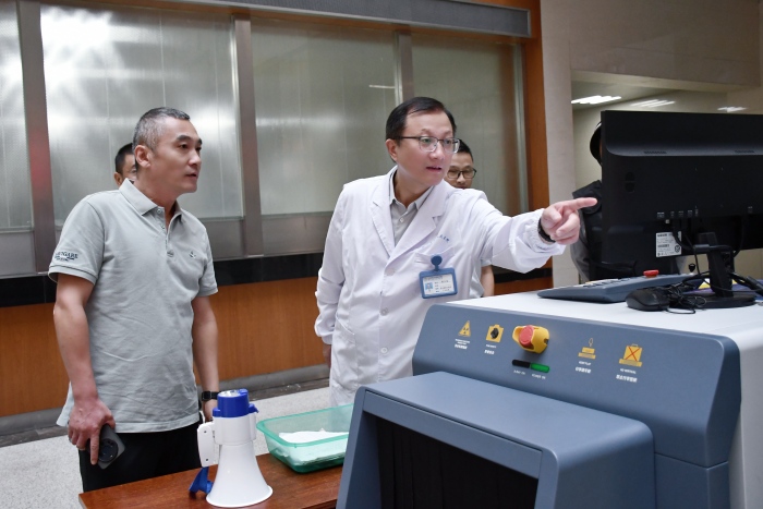 检查组先后来到南区药房、南门安检入口、药库、消防控制室、高压配电室、弱电井、气体保护区、职工与患者食堂等场所,对麻精药品储放、库房管理、设备运行、人员值班、防火防盗、水电气安全及食品安全等进行重点检查。对检查过程中发现的问题及隐患,检查组当场提出整改意见,并督促相关责任人立即整改。张文俊院长指出,安全生产无小事,预防为先乃根本,必须时刻牢记安全生产的重要性,针对医院内的重点区域和关键环节,强化风险识别与防控能力,确保每一项安全生产措施都能落实落细落到位,确保节日期间医院各项工作有序开展,为广大职工和患者提供安全、稳定的医疗环境。