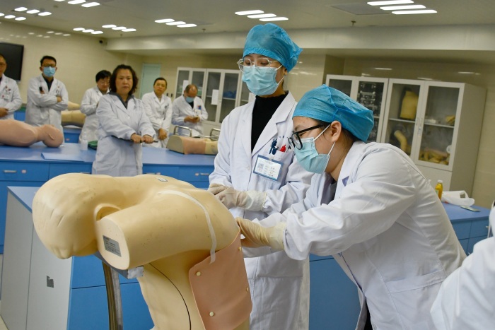 见面会上,我院党委副书记、院长张文俊就医院住培基地的整体建设、制度落实、持续整改成效及内涵提升情况作了专题汇报。随后,专家组分为管理组、内科组和外科组三个小组,深入临床与教学一线,通过听取汇报、查阅资料、实地查看、访谈师资与住院医师、抽查病历书写、观摩教学查房与技能操作等方式,对我院住培工作的整改落实情况、过程管理规范性、师资教学能力及培训质量成效进行了全面、细致的复核评估与现场指导。
