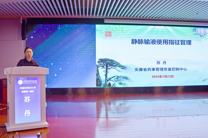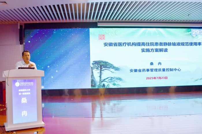 7月23日下午,由安徽省药事质控中心主办,滁州市药事质控中心承办的安徽省医疗机构"提高住院患者静脉输液规范使用率"专题巡回培训(滁州站)在我院南区举办。来自全市各级卫健委、二级以上医疗机构分管院长、医务科、护理部、药剂科负责人及相关人员共200余人参加培训。市卫健委副主任史焰高、我院副院长沈童童出席会议并致辞。