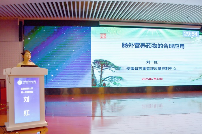 会议特邀中国科学技术大学附属第一医院、省药事质控中心主任姜玲教授,蚌埠医科大学第一附属医院桑冉教授,中国科学技术大学附属第一医院史天陆教授、苏丹教授、周冉教授和安徽医科大学第一附属医院刘红教授等省内知名专家做专题授课。会议通报了2024年安徽省各地市二、三级医院住院患者静脉输液使用检查指标情况。专家们分别以安徽省医疗机构提高住院患者静脉输液规范使用率实施方案,住院患者静脉输液使用监测指标,静脉输液使用指征管理,人血白蛋白合理使用,肠外营养药物合理使用等内容进行授课。