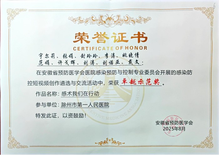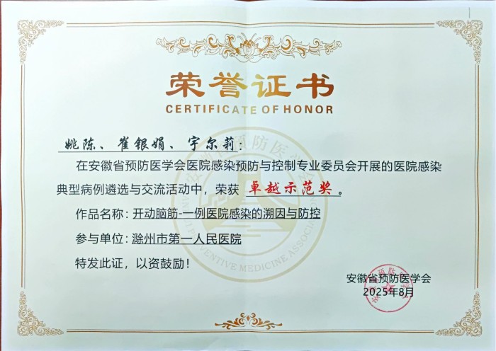 此次获奖标志着我院医院感染管理工作取得新突破。我们将以此为契机,进一步强化多学科协作,深化"规范+创新"的防控理念,持续为构建安全高效的医疗环境发力。(供稿:范娟)