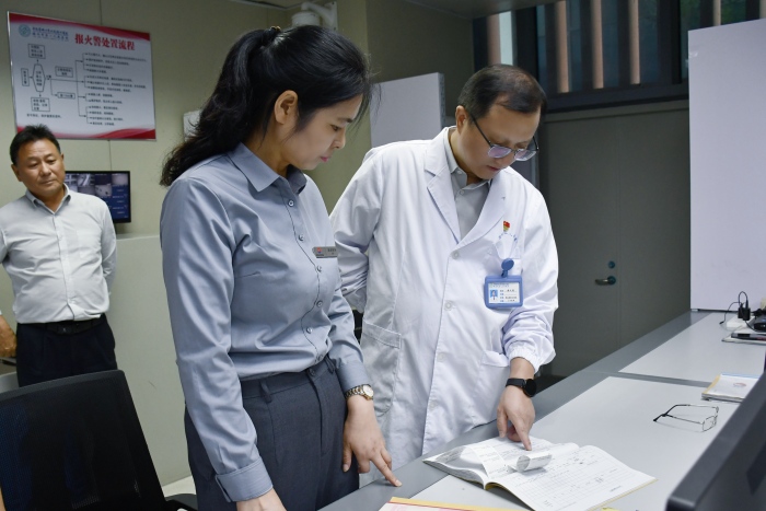 News为切实保障中秋、国庆“双节”期间医院各项工作平稳有序开展,为广大患者提供安全可靠的就医环境,9月29日上午,我院党委副书记、院长张文俊带领设备科、信息科、总务科、保卫科等科室负责同志,对我院南区开展了全面且细致的安全生产检查工作。