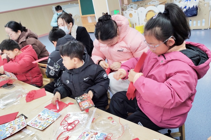 活动现场童趣盎然,手工制作环节中,家长与孩子默契配合,共同完成创意手工小包的制作,亲子间的协作与欢笑,让现场满是温馨甜蜜。