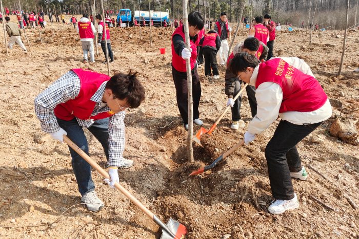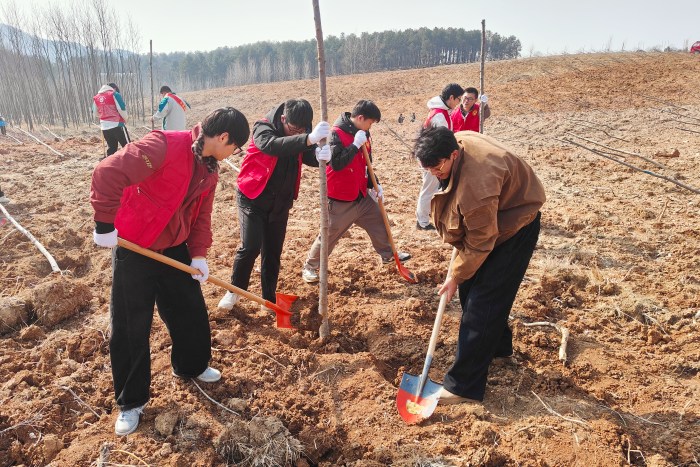 活动现场暖意融融、秩序井然。在工作人员指导下,团员青年们迅速投入劳动,大家分工明确、协作默契,挥锹挖坑、扶苗正株、培土压实、浇水灌溉,每一个环节都一丝不苟。大家不怕脏累、干劲十足,用双手将树苗植入土壤,用汗水浇灌新生绿意。经过一上午的辛勤劳作,一排排新栽树苗迎风挺立,为舜山林场增添了勃勃生机,也为滁州生态建设注入了青春动能。
