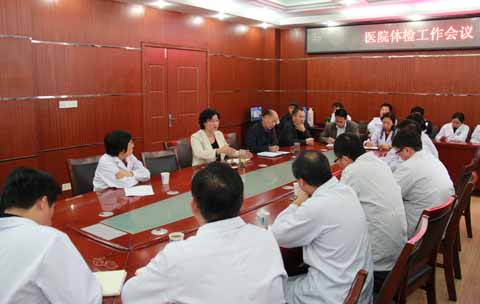 会上,刘家珍院长首先强调体检工作的重要性,其次指出目前体检工作存在八个方面的问题:1.市场开拓不足;2. 宣传资料不系统不完善;3.体检环境差;4.流程不合理;5.服务意识差;6.体检报告内容太简单;7.检后服务差,没有上门宣教指导,没有健康干预,没有满意度调查;8.检查后无档案保存。最后,对体检工作提出三点要求:一是做好检前、检中、检后服务工作;二是保证体检及体检报告的质量;三是改变观念,不断创新。