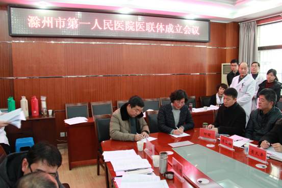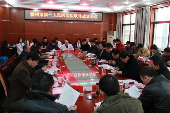 1月27日下午,我院召开医联体成立会议。市卫计委主任张文金、副主任宋延举、黄久平,琅琊区、南谯区、全椒县、来安县卫计委主要负责人,院领导班子成员、医联体18家成员单位负责人以及我院相关职能科室负责人参会。副院长张相双主持会议。