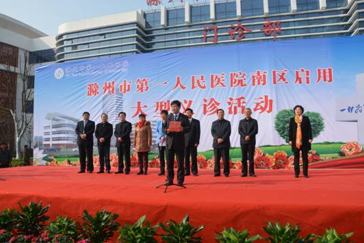 News11月30日上午10:16,我院南区启用大型义诊活动在南区东门广场隆重举行。市人大常委会主任李耀才,市政协主席何希勇,市委常委、副市长金力,南京市卫计委副主任黄义龙,南京鼓楼医院集团董事长、南京鼓楼医院院长韩光曙,南京儿童医院党委书记金福年,蚌埠医学院副校长张武丽,皖南医学院副校长吴金月,院党委书记、院长刘家珍等出席启用仪式并共同点亮启用球。活动由市卫计委主任张文金主持。