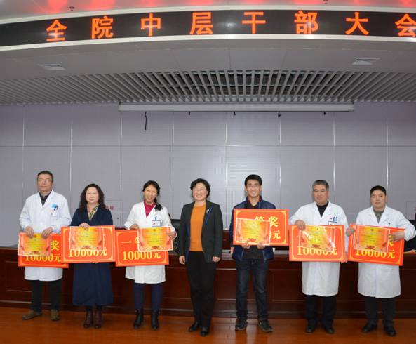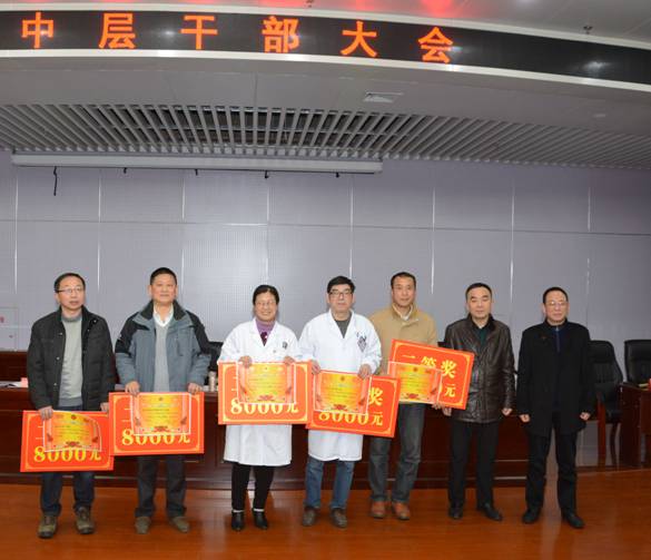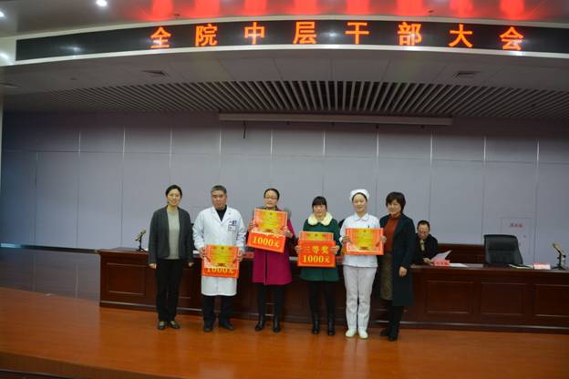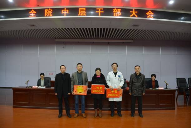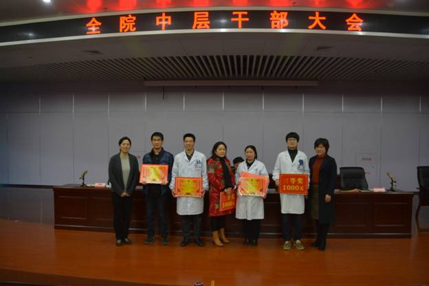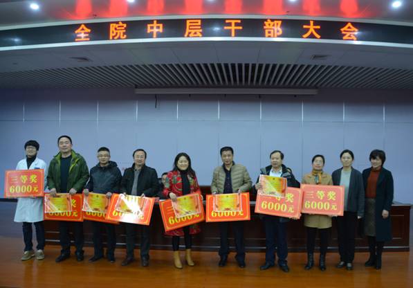 大会随后举行了颁奖仪式,院领导为获奖科室和人员颁发了奖状和奖金,并合影留念。