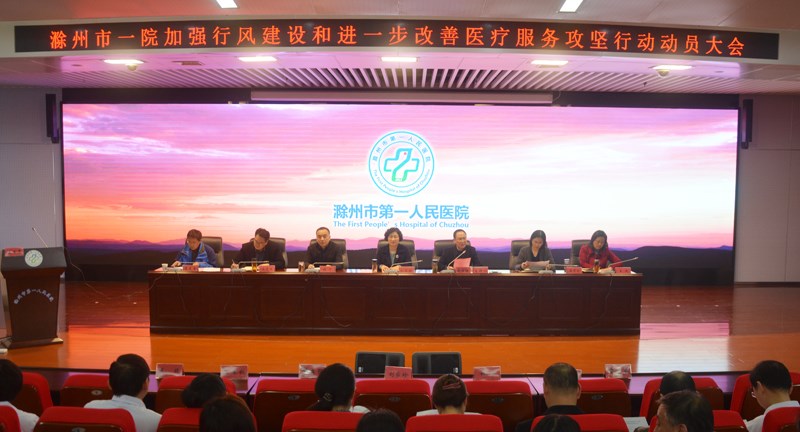 会上,院党委委员、副院长林宁宣读了《滁州市第一人民医院关于加强行风建设和进一步改善医疗服务攻坚行动实施方案》。副院长赵云猛对改善医疗服务要求66条进行了详细解读,并明确了各部门的任务分工。南、北区门诊部、药剂科和出入院管理科等科室负责人蒋运会、沈世萍、王勇、徐晓梅分别代表窗口部门作表态发言。他们表示,一定会以本次攻坚活动为契机,提高工作效率,提升服务质量,恪尽职守、踏实工作,全面完成各项任务,为推动我院医疗服务再上新台阶做出应有贡献。