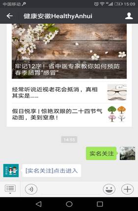 “健康安徽HealthyAnhui” 微信公众号实名关注