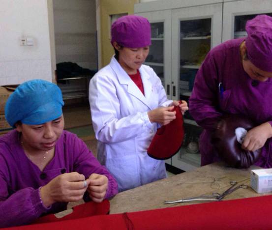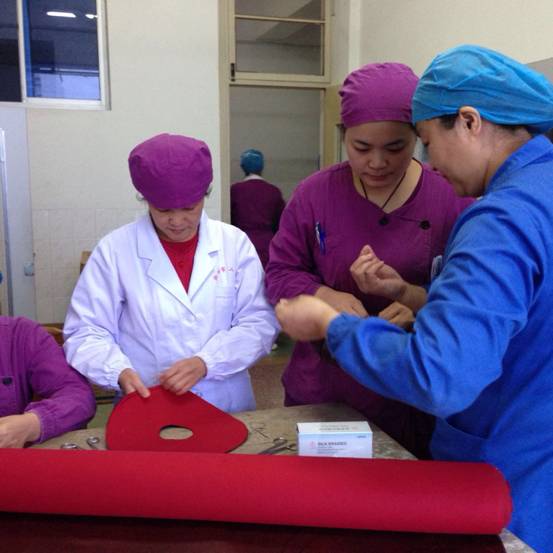 都说护士的手是灵巧的,是的,尤其是我们手术室护士的手。西大街院区手术室的护理团队不仅用灵巧的双手圆满完成了每年数千台的手术护理任务,还利用工作之余精心制作了头圈、约束带、棉腿套、棉护肩套等护具,这些小制作既节省成本又便于清洁,更为术中病人各种手术体位的摆放和保暖提供了方便。我们在制作过程中,都会深切体会病人使用时的感受,以手术台上病人的体验为准,把手术室护士们对手术病人的无尽关爱融入到制作的一针一线里面,从灵巧的双手中产生的不只是一件件小制作,更烘托出一份份大关爱。