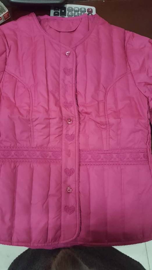 2.女医生羽绒衣,v子领,门襟袖口加花边配饰,腰节加松紧收腰。