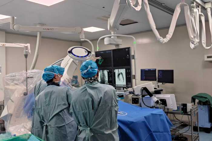 针对患者超高龄,手术风险极高的特点,刘状主任和我院多学科充分术前讨论,认为:虽然手术风险剧增,但若不及时手术,患者随时有面临血管破裂危及生命的风险。最终决定采取创伤小,恢复快,效果确切的经股动脉入路下的胸主动脉覆膜支架腔内隔绝术。