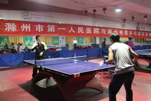 48日上午,“滁州市第一人民医院与滁州电信乒乓球友谊赛”在老明光乒乓球馆进行。本次比赛两家单位共有20名乒乓球选手参加,运动员们在场上挥汗如雨,比赛紧张激烈。