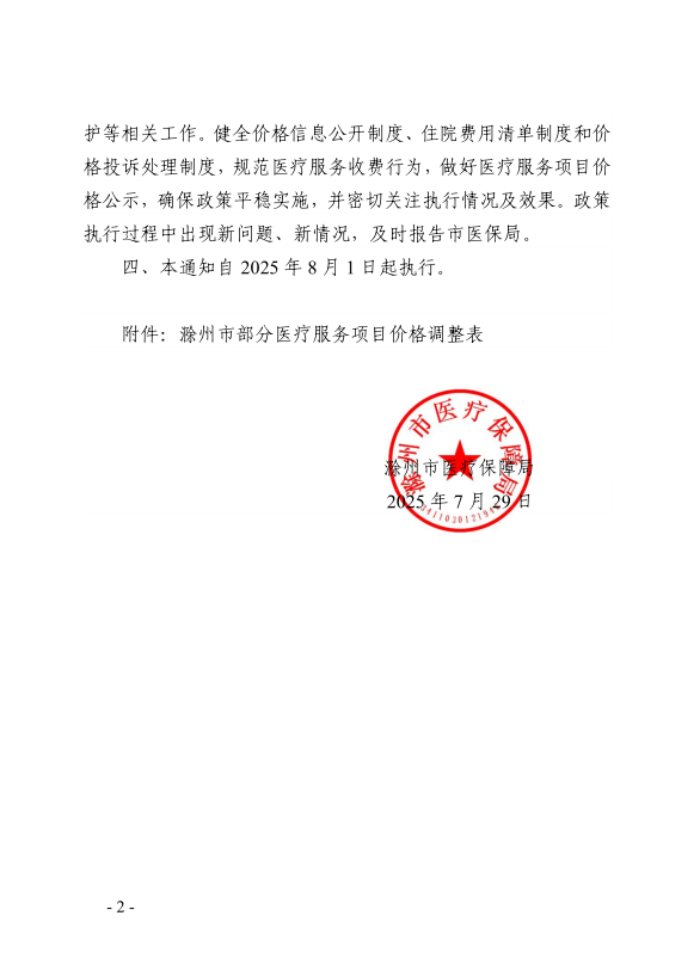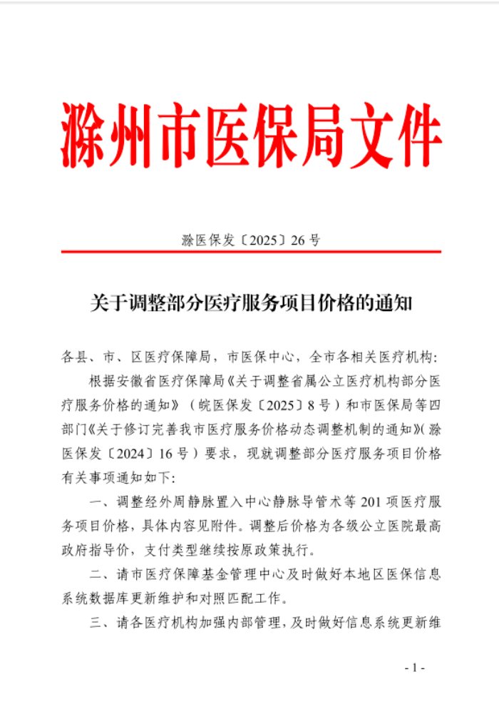 滁州医疗服务价格2025版(最新)
